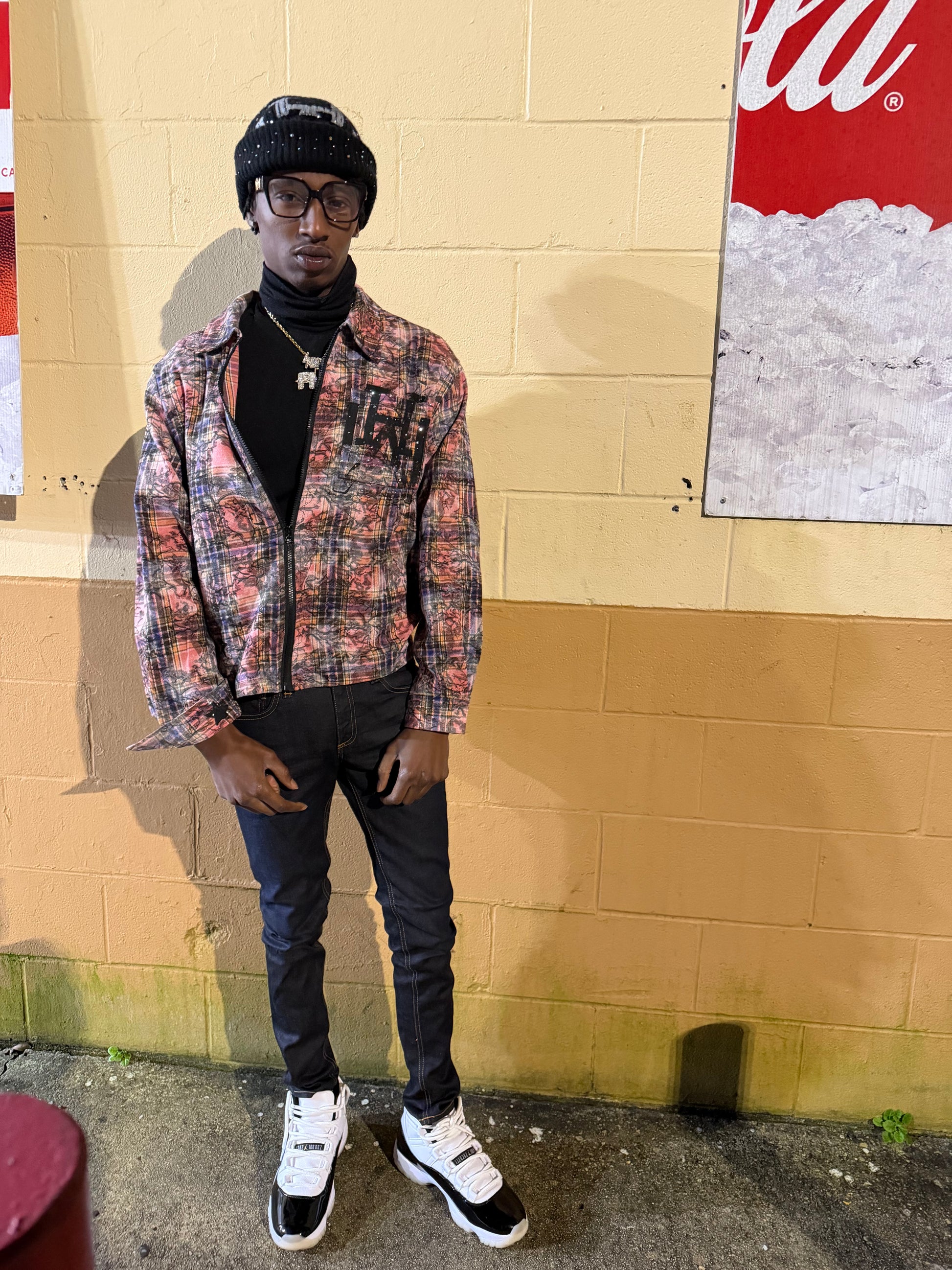 Every flannel has it own unique design, real 1 of 1! The “Caution Flannel” get its name from the rhinestones dancing like the Caution Light! Each shirt was handmade 1 by 1! #HwyCollection🛣️